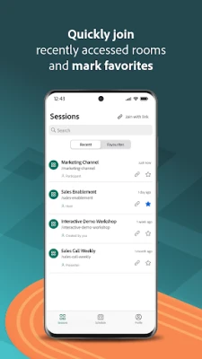 Adobe Connect inakupa uwezo kamili wa kudhibiti na kushiriki katika mazingira ya mikutano. Kama mwenyeji, ingia kwa urahisi, kubali wageni, na wapandishe vyeo washiriki wengine ili kusimamia vyema mkutano wako. Unaweza kubadilisha hali yako kwa ishara rahisi kama vile kuinua mkono, kukubali au kutokukubaliana, au kuwajulisha wengine kuwa umejiondoa kwa muda. Pia, shiriki kikamilifu katika vyumba vya mijadala tofauti (breakout rooms) vyenye sauti, video na gumzo, ukiboresha ushirikiano. Usalama wako ni muhimu, na programu hii inasaidia Kuingia Mara Moja (SSO) na uthibitishaji wa hatua mbili kwa ulinzi wa ziada. Adobe Connect inakuhakikishia mikutano salama, shirikishi, na yenye tija.