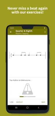 Jifunze akodi za muziki, mizani, na vipindi kwa urahisi. Boresha uwezo wako wa kutambua melodi kwa kusikiliza na kusoma muziki papo hapo. Imba noti na vipindi. Jenga ujuzi wako muhimu wa muziki kupitia nadharia kamili.