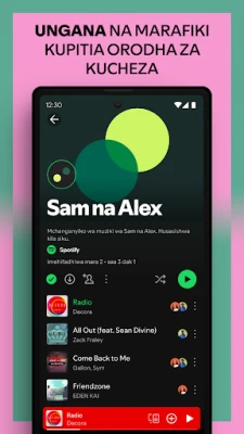Spotify inakuletea mamilioni ya nyimbo na podikasti. Gundua muziki mpya, sikiliza nyimbo unazopenda na ufurahie maudhui mbalimbali, yote bila malipo. Burudani yako kamili, popote na wakati wowote.