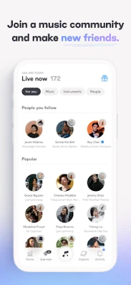 Jitayarishe kukabiliana na changamoto mbalimbali na kutimiza misheni yenye kusisimua ili ujishindie zawadi za kupendeza. Lakini sio lazima ufanye peke yako; programu inahimiza ushirikiano. Ungana na wanamuziki wengine wenye vipaji ili kukamilisha malengo ya pamoja na kufikia uwezo wenu kamili. Jenga uhusiano imara ndani ya jumuiya inayoshiriki shauku yako ya muziki. Hapa, utapata marafiki wapya, utapokea na kutoa msaada, na mtahamasishana katika kila hatua ya safari yenu ya kimuziki. Ni mahali ambapo vipaji vinakutana na kukua pamoja.